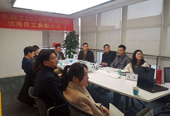 2021年1月21日下午,廣東甘化科工股份有限公司采用線上會議的方式同時連接上海、江門、成都、沈陽四個會場召開了2020年終總結暨優秀員工表彰大會。會議由副總裁李忠先生主持,甘化科工總裁施永晨先生、甘化科工副總裁兼四川升華總經理馮駿先生、沈陽含能總經理馬震峰先生和優秀員工代表分別發言。