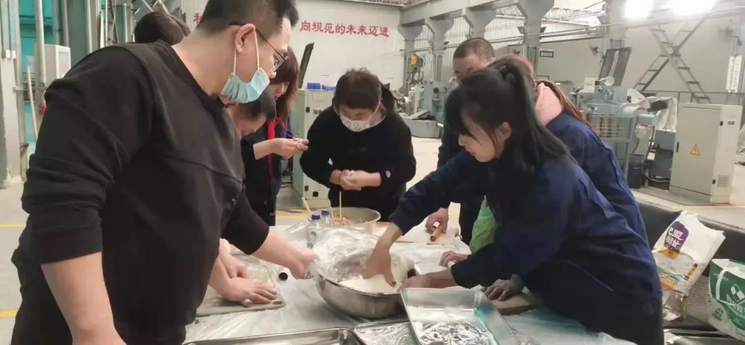 活動(dòng)現(xiàn)場(chǎng),所有員工熱情高漲,分別從家里帶來(lái)了電磁爐、煮鍋、面盆、搟面杖等廚房用具,并分頭提前采買了酸菜、豬肉、韭菜、雞蛋、茴香等等餡料。大家歡天喜地齊聚一堂,年會(huì)活動(dòng)在馬震峰總經(jīng)理的新年致詞中拉開序幕。